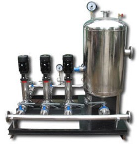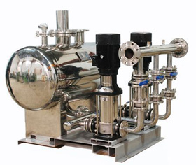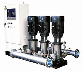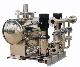 無負壓供水設備的基本工作原理是根據用戶用水量變化自動調節(jié)運行水泵臺數和一臺水泵轉速,使水泵出口壓力保持恒定。當用戶用水量小于一臺水泵出水量是,系統根據用水量變化有一臺水泵變頻調速運行,當用水量增加時管道系統內壓力下降,這時壓力傳感器把檢測到的信號傳送給微機控制單元,通過微機運行判斷,發(fā)出指令到變頻器,控制水泵電機,使轉速加快以保證系統壓力恒定,反之當用水量減少時,使水泵轉速減慢,以保持恒壓。當用水量大于一臺泵出水時,一臺泵切換到工頻運行,二臺泵開始變頻調速運行,當用水量小于兩臺泵出水量時,能自動停止一臺或二臺泵運行。在整個運行過程中,始終保持系統恒壓不變,使水泵始終工作在高校區(qū),既保證用戶恒壓供水,又節(jié)省電能。設備不需配備專職操作人員。